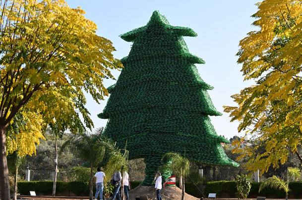 10 metre yüksekliğiyle Guinness Rekorlar Kitabı'na giren plastik ağaç, Lübnan'ın 10 bin 452 kilometrekarelik yüz ölçümünü de temsil ediyor.