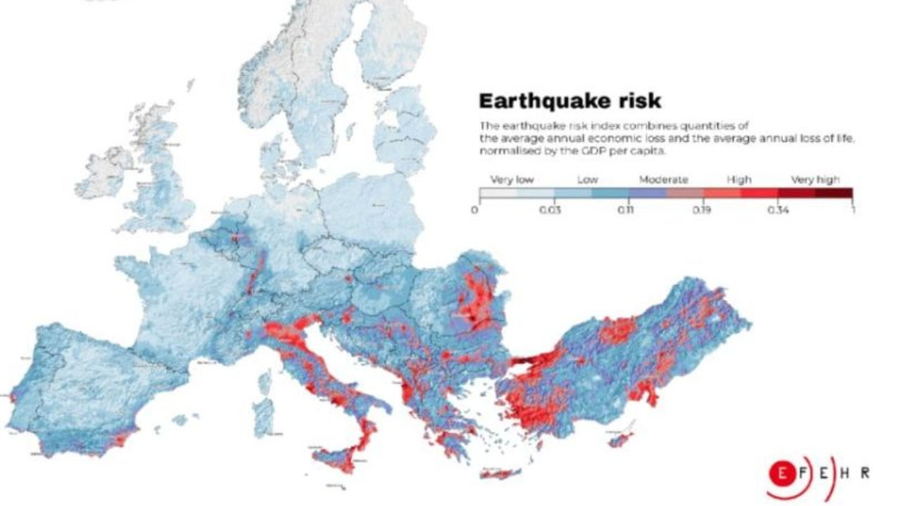 Avrupa'da sismik riskin en yüksek olduğu ülkeler Türkiye, Yunanistan, Arnavutluk, İtalya ve Romanya olarak belirtildi.