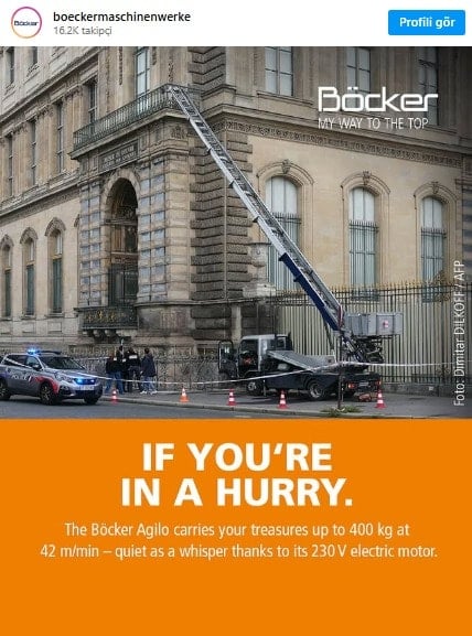 Soyguncuların müzeye girmek için Böcker imzalı bir yük asansörü kullanması, firmanın adının kısa sürede uluslararası medyada yer almasına yol açtı.