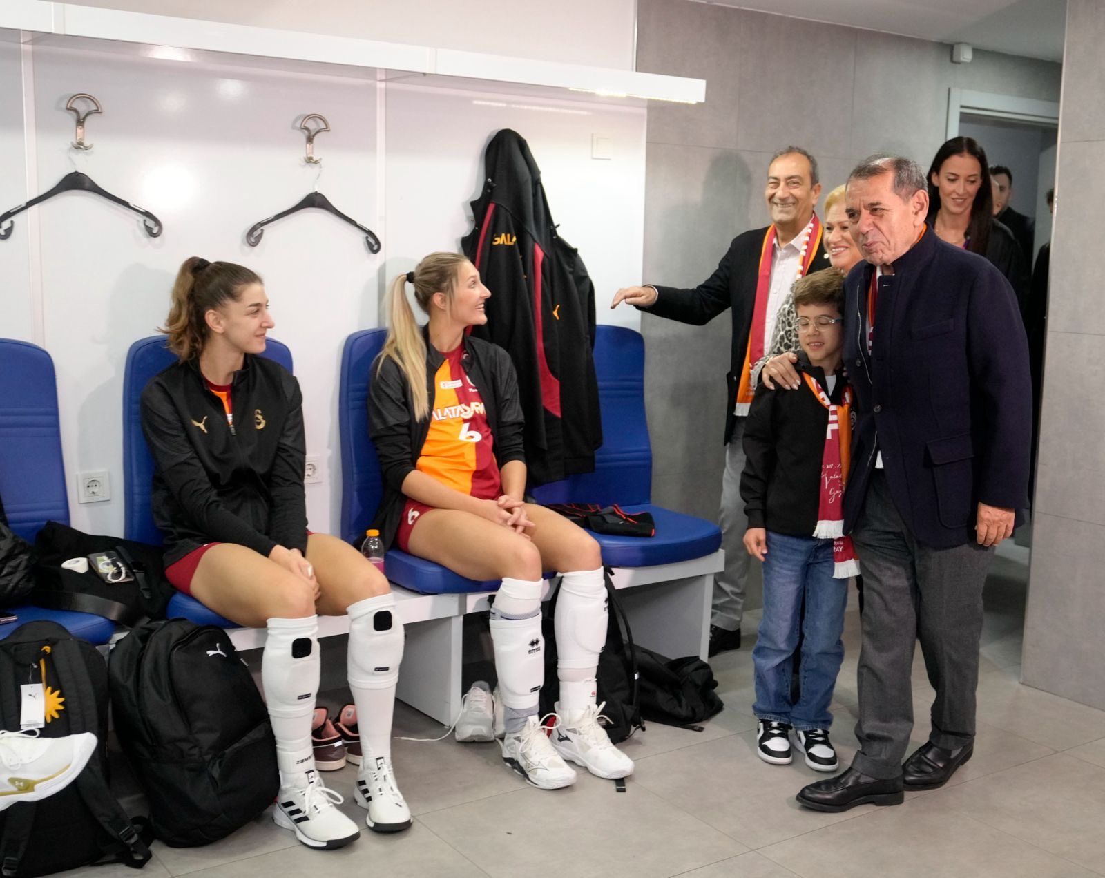 DURSUN ÖZBEK VOLEYBOLCULARI TEK TEK KUTLADIKarşılaşmayı tribünden takip eden Galatasaray Başkanı Dursun Özbek, maç sonunda tribüne gelen voleybolcuları tek tek kutladı.