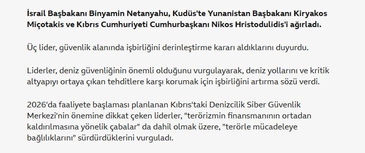 Uçuş kayıtlarına göre bu ülkeler; İsrail (Tel Aviv), Yunanistan (Atina) ve Güney Kıbrıs Rum Yönetimi’dir (Larnaka). Yani Kudüs’te toplanan üçlü ittifak ülkeleridir.