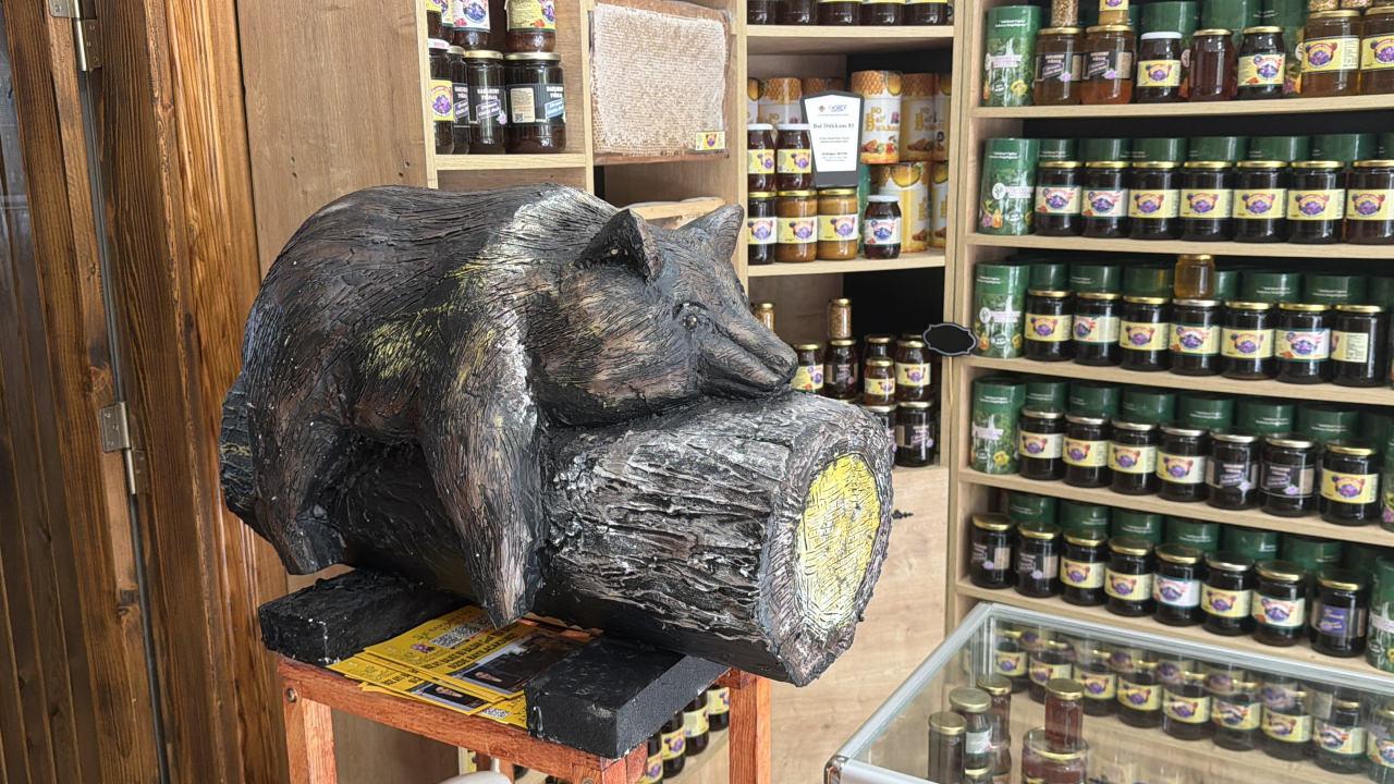 Bal üreticisi Yunus Emre Söğüt, sınırları aşan bu ilgiyi simgelemek amacıyla iş yerine, baldan bayılan ayıyı tasvir eden ahşap bir dekor yaptırdı.