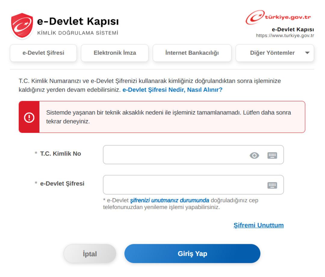 E-DEVLET "SİSTEMDE YAŞANAN BİR TEKNİK AKSAKLIK NEDENİ İLE İŞLEMİNİZ TAMAMLANAMADI" HATASI NEDİR, NASIL DÜZELTİLİR?