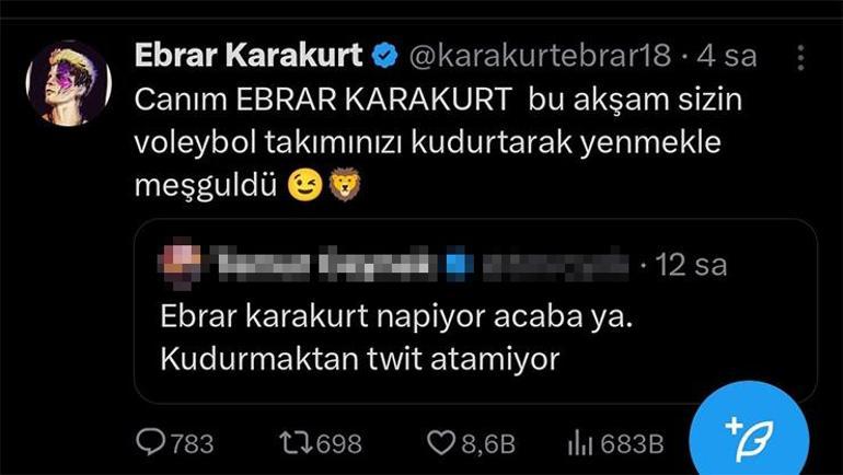 Karakurt, söz konusu paylaşımın ardından bu kez X platformunda bir Galatasaraylı taraftara verdiği yanıtla ikinci bir gündem yarattı.