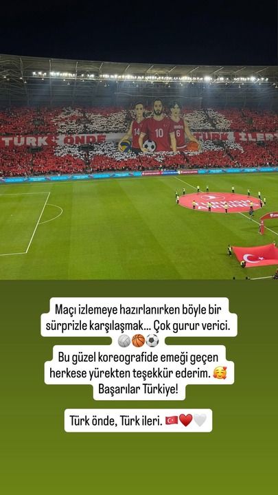 “Maç izlemeye hazırlanırken böyle bir sürprizle karşılaşmak çok gurur verici. Başarılar Türkiye! Türk önde, Türk ileri.”