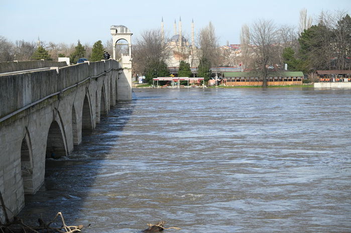 AA'da yer alan habere göre yağışlar, kar erimeleri ve Bulgaristan'ın enerji ürettiği barajlardan kontrollü su salımı yapmasıyla geçen hafta debileri yükselen Tunca ve Meriç nehirlerinin taşması, birçok köy yolu ve tarihi köprünün kapanmasına, binlerce dekar tarım arazisinin su altında kalmasına neden oldu.