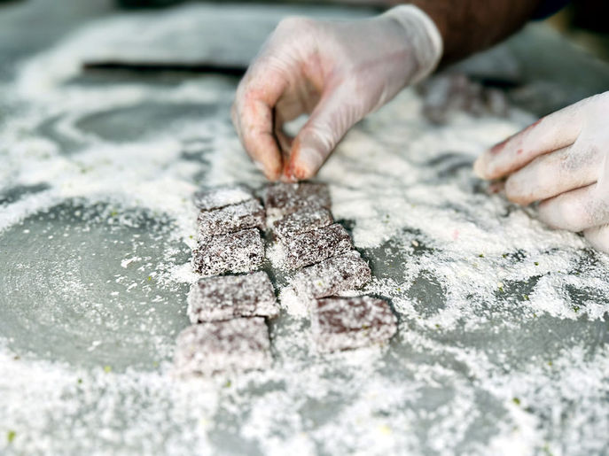 "İNSANA MUTLULUK VERİYOR" Lokumun içinde sadece acı biber, mısır nişastası, doğal şeker ve su olduğunu belirten Meriç, "Asla glikoz kullanmıyoruz. Bizde glikoz denilen bir madde yok. Ne var? Edirne'nin tarihi pancarın şekeri, doğal şekeri. Mısır nişastası ve su, başka bir şey yok. Bir de ne var? Karaağaç'ın biberi içine giriyor. Bir de ustalık var. Ben çok kişiyle de böyle sohbet ettim. Baştan çok tatlı geldiğini sonrasında acısını aldıklarını belirtiyorlar. İşte bu aslında insana mutluluk veren bir dünya hali bence" ifadelerini kullandı.