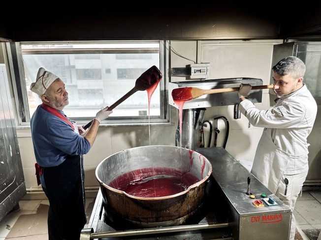 "ÖNCE TATLANDIRIYOR, ARDINDAN GÖZDEN YAŞ GELİYOR" Acı biberli lokumun öyküsünü anlatan Meriç, "Yıllardan beri, neredeyse 30 yıldan bu yana hayalimde vardı, nasip bugüneymiş. Torunlarım bana; ‘Dede, sen evde ciğer de yapıyorsun, biber de var. Bize niye böyle acı biberden bir lokum yapmıyorsun’ dediler. Ben de hemen işe koyuldum. Acı biber ile lokumu birleştirdim. Önce tatlandırıyor, ‘ha bunda acı falan yok’ diyor müşteri. Ondan sonra bakıyorum gözlerinden mutluluk gözyaşı geliyor. Tatlı acı ikisi bir arada. Hatta bunun bir de esprisini yaptık dedik ki; bu bir ‘dünya hali’ lokumudur. Dünya hali dediğimiz işte böyle; tatlandırır, acılaştırır. Biz de hem tatlandıralım, hem de mutluluk gözyaşlarını bu biberle birleştirelim dedik" diye konuştu.