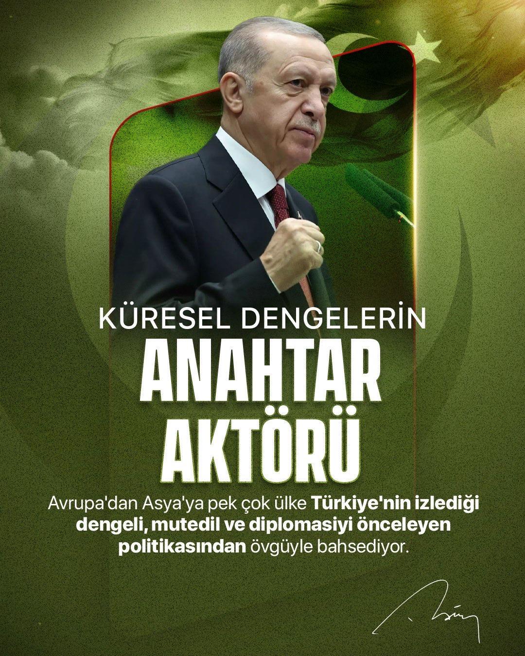 "Krizlerin, çatışmaların ve savaşların ortasında bir istikrar adası olmayı başaran Türkiye, adalet, barış ve diplomasiyi önceleyen aktif dış politikasıyla hem bölgesinde hem de küresel düzeyde güvenli bir liman olarak hedeflerine emin adımlarla ilerlemektedir."