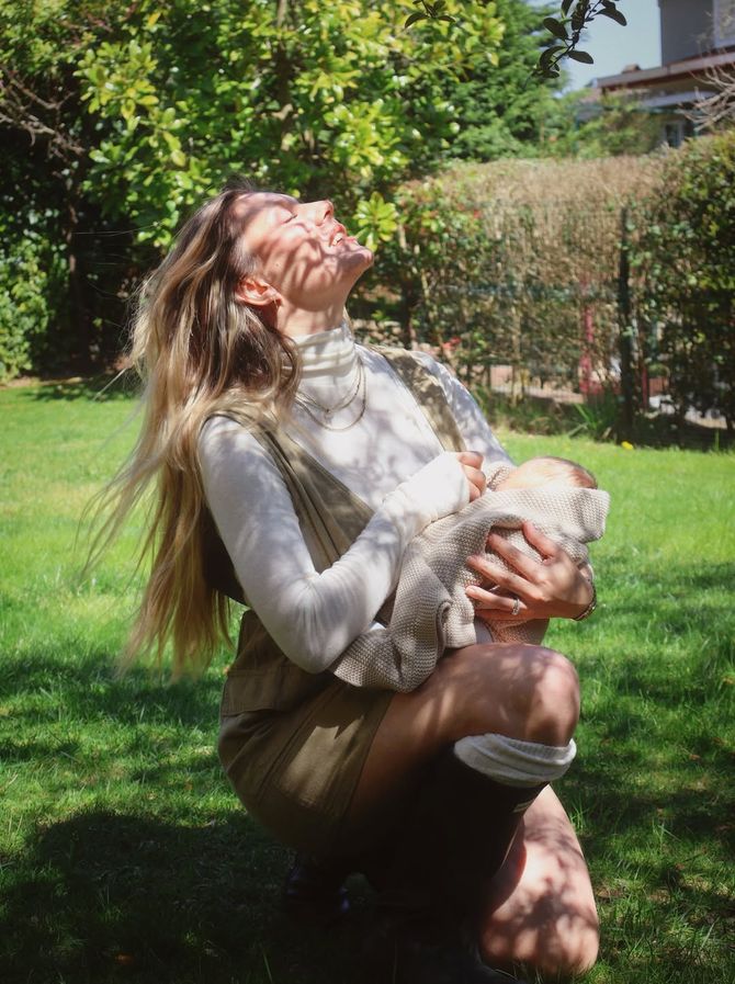 Henüz bebeğinin yüzünü ve ismini paylaşmayı tercih etmeyen Kökenli, bu gönderisine "Çocuklarla arka bahçede" notunu düştü.