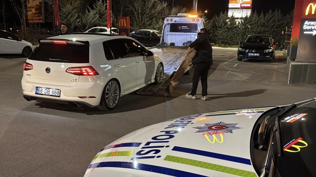 Olay, gece yarısı Aksaray-Ankara karayolu üzerinde bulunan bir tesiste yaşandı. Edinilen bilgiye göre, bir aracın abartı egzozla patlama sesi yaparak tesiste trafiği tehlikeye düşürdüğü ihbarı alan Bölge Trafik Şubesi ekipleri kısa sürede tesise intikal ederek aracı uzaktan takibe aldı.