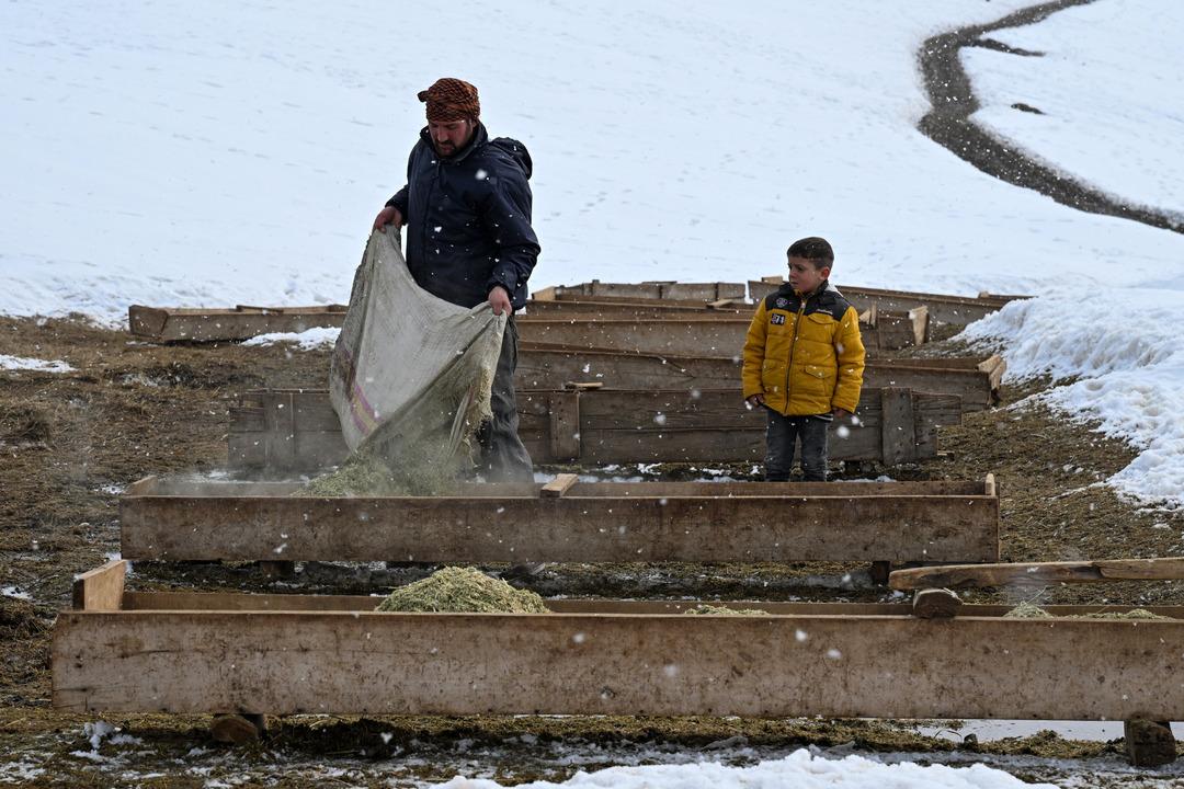 Eksi 30 derecede yaşam mücadelesi: 350 hayvan için köylerini terk etmiyorlar