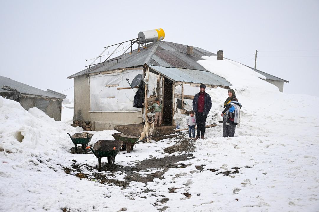 Gece sıcaklığın zaman zaman sıfırın altında 25-30 dereceye kadar düşmesiyle yaşamın daha da zorlaştığı mahallede 3 çocuklarıyla kalan çift, omuz omuza vererek ağır kış koşullarına göğüs geriyor.