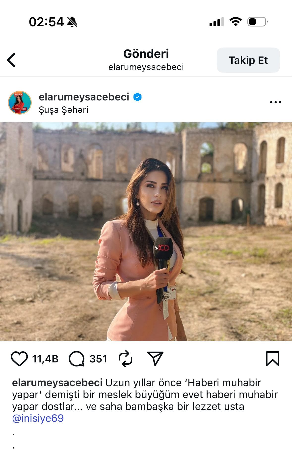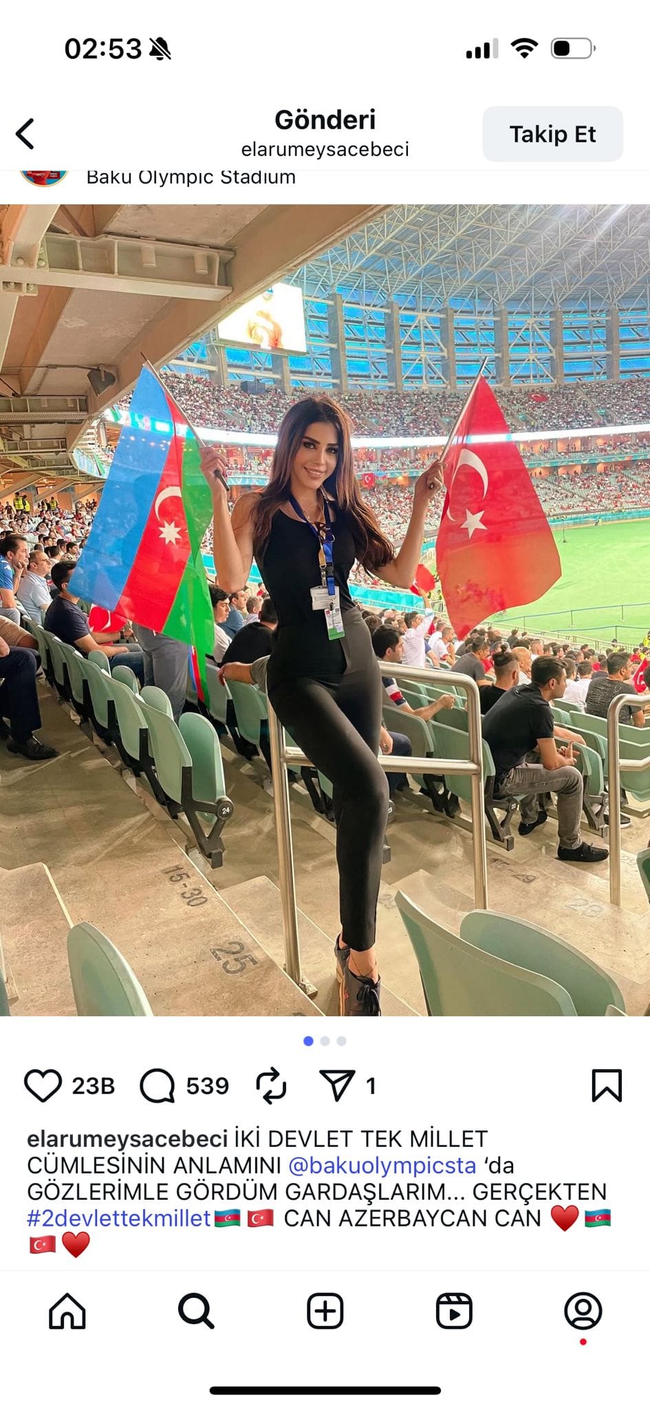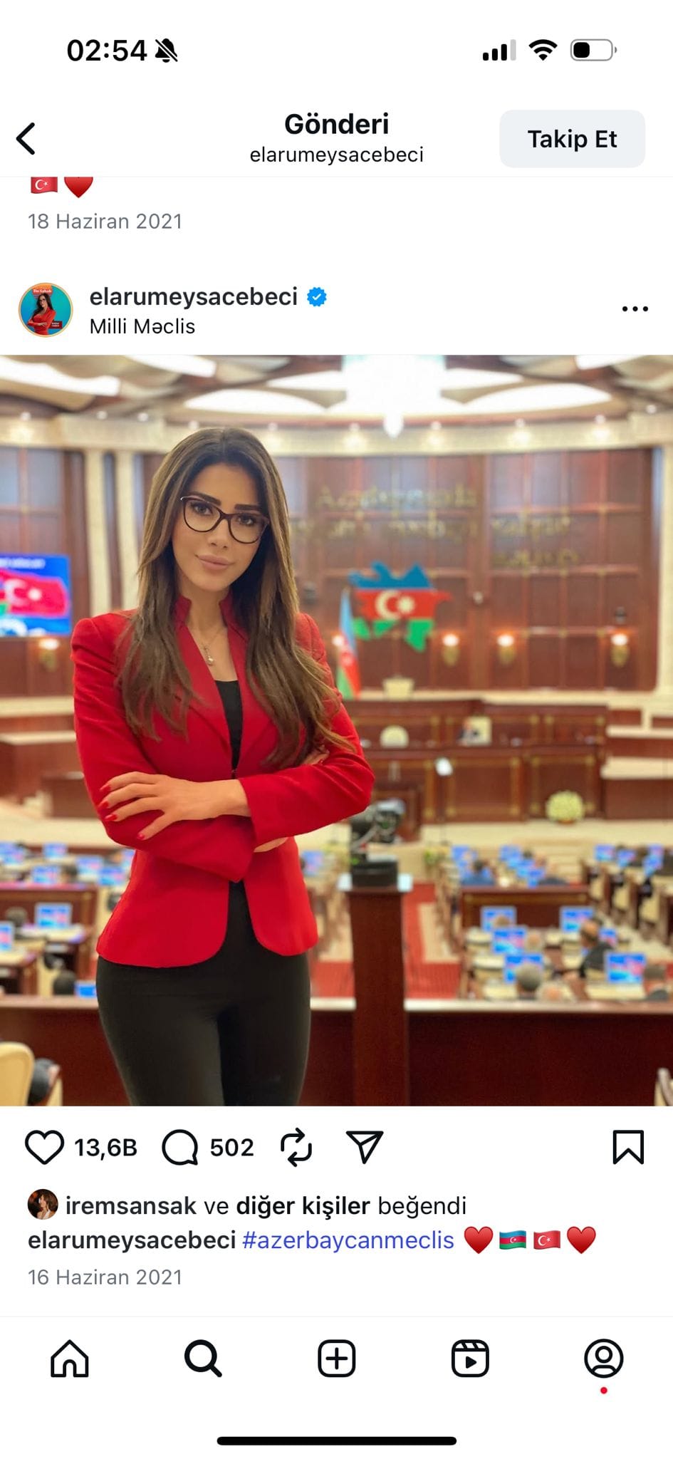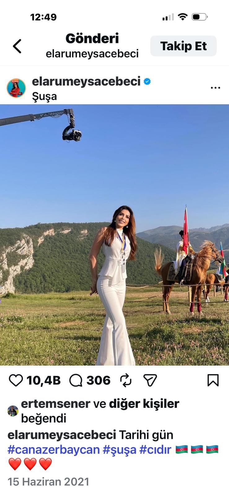 “Bir husus daha var. O da şu. Tabii bir de Ela Rumeysa Cebeci ile ilgili bir boyut var. Dün mesela beni arayan çeşitli Ankara gazetecileri oldu arkadaşlar. ‘Ela Rumeysa Cebeci Cumhurbaşkanı'nın bir gezisine katılmış’ dediler. Ben, aslında ihtimal vermedim başta. Doğru olmadığını düşündüm. Sonradan kendi Instagram hesabında paylaştığı fotoğrafı ilettiler bana. Gerçekten de 15-17 Haziran 2021 tarihinde Sayın Cumhurbaşkanı'nın Şuşa gezisi, Azerbaycan Şuşa gezisini izlemiş. Oradan iki üç fotoğraf paylaşmış. Onlardan biri bu işte, kendi Instagram hesabındaki fotoğraf. Bu Bakü Stadyumu'nda maç oynanıyormuş. Orada 'iki devlet tek millet' cümlesinin anlamı...”