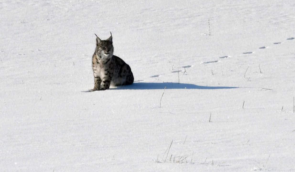 Bölgede etkili olan kar yağışı sonrası doğada yiyecek bulmakta zorlanan vaşak ailesinin köy kırsalına kadar indiği görüldü. Bir süre kar üzerinde ilerleyen vaşaklar, daha sonra gözden kayboldu.