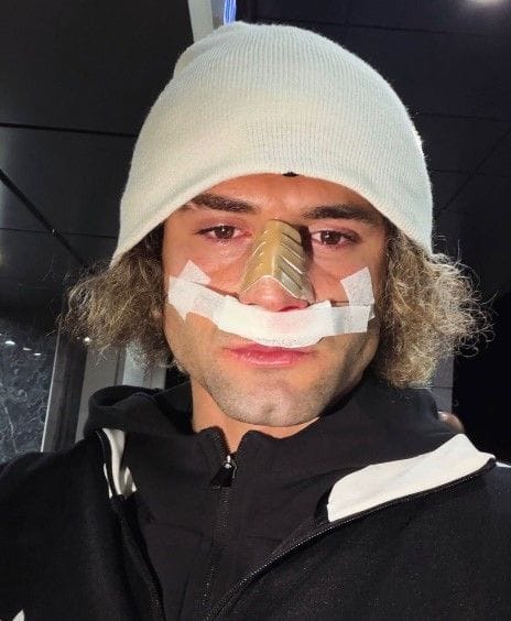 Oyuncunun burnunun kırıldığı tespit edildi.