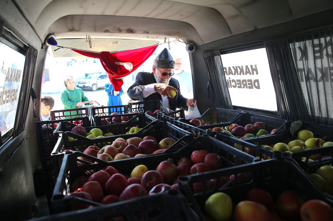 Türkiye turuna 11 yıl önce askeri personele elmalarını dağıtmak için çıktığını anlatan Yılmaz, meyvelerini vatandaşlarla buluşturmayı sürdüreceğini sözlerine ekledi.