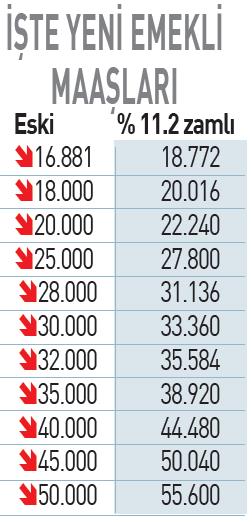 Tüketici Fiyat Endeksi yılın ikinci yarısında temmuzda yüzde 2.06, ağustosta yüzde 2.04, eylülde yüzde 3.23, ekimde yüzde 2.55 artış kaydetmişti. Kasım ayında ise bu oran yüzde 0.87 olarak gerçekleşti. Böylece SSK ve Bağ-Kur emeklisinin 5 aylık enflasyon zam oranı yüzde 11.20 olarak kesinleşti. Geriye aralık ayı enflasyon oranının netleşmesi kaldı. Bu doğrultuda 16 bin 881 TL olan en düşük SSK ve Bağ-Kur emeklisinin maaşı ilk dört aylık yüzde 11.20'lik enflasyona göre, 18 bin 772 TL olarak kesinleşti.
