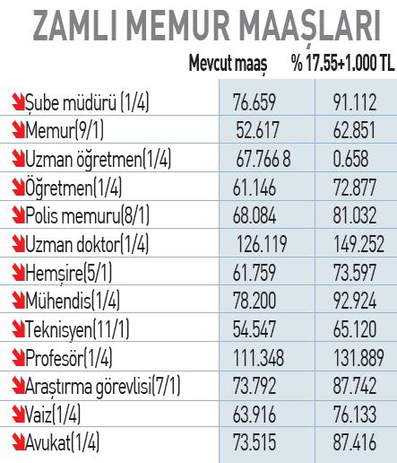 Beş aylık enflasyona göre en düşük memur maaşı 1000 TL'lik seyyanen zamla 60 bin 371 TL'ye çıkacak. Üniversite mezunu memurun maaşı da 62 bin 856 TL'ye yükselecek.