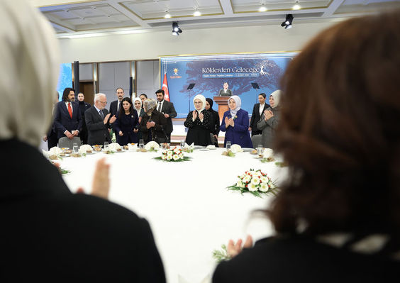 Emine Erdoğan, "İşte biz de bugüne kadar yüreğimizden taşan büyük bir vatan aşkıyla canımızı dişimize takarak çalıştık. Çalışmaya da devam edeceğiz. Ne mutlu bana ki sizlerin yüzlerine baktığımda bu onurlu davanın emin ellerde olduğunu görüyorum. Allah hepinizden razı olsun." diye konuştu.