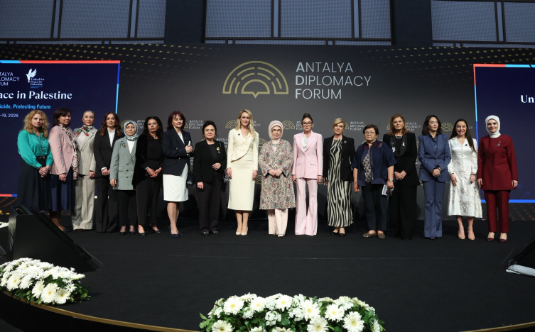 Cumhurbaşkanı Erdoğan'ın eşi Emine Erdoğan, sosyal medya hesabından yaptığı açıklamada, "Antalya Diplomasi Forumu kapsamında 'Filistin İçin Tek Yürek' konulu panelde değerli lider eşleri, farklı ülkelerden bakanlar ve uluslararası kuruluşların temsilcileriyle ortak vicdanda buluştuk." ifadelerine yer verdi.