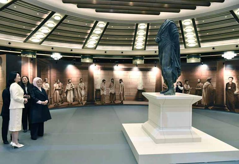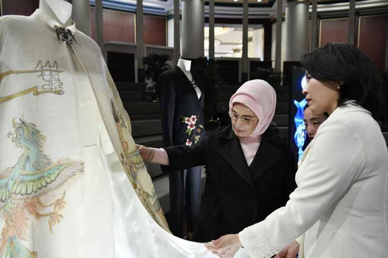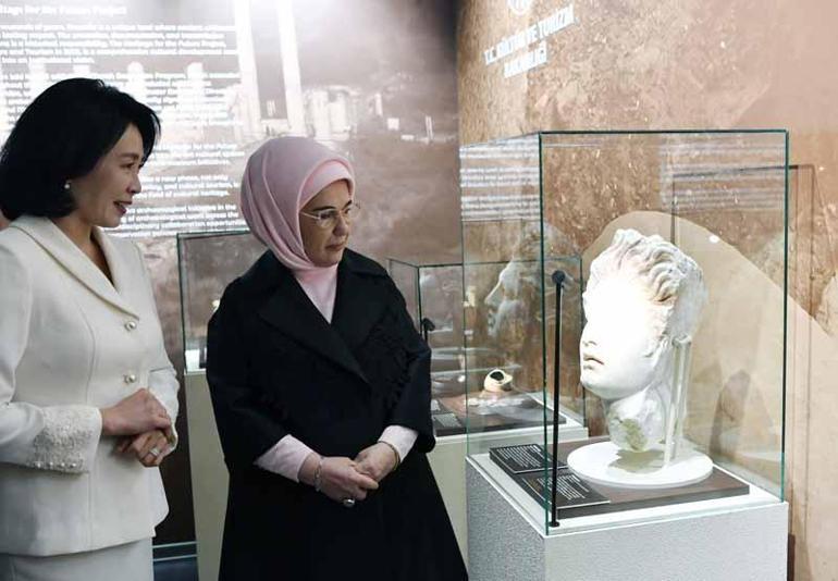Lider eşleri, daha sonra 'Anadoludakiler: Sof'un Zamansız Yolculuğu' sergisini ziyaret etti. Ankara Valiliği tarafından patenti alınan sof kumaşından yapılan ürünleri yakından inceleyen Kim, kumaşları çok beğendiğini dile getirdi. Emine Erdoğan'ın himayesinde kurulan Cumhurbaşkanlığı Çocuk Orkestrası ve Korosu da lider eşlerine mini konser verdi. Kim, çocukların söylediği 'Arirang' isimli Kore halk şarkısına eşlik etti. Lider eşleri, sanatçılar Merve Başoğlu ve Muhammet Başoğlu'nun müzik dinletisini de ilgiyle izledi. Cumhuriyet tarihinin en kapsamlı arkeoloji projesi 'Geleceğe Miras' kapsamında yapılan kazılarla bulunan eserlerin yer aldığı, 'Arkeolojinin Altın Çağı Sergisi'ni de gezen Emine Erdoğan ve Kim, Roma İmparatoru Marcus Aurelius'un bronz heykelin de yer aldığı sergideki eserleri yakından inceledi.