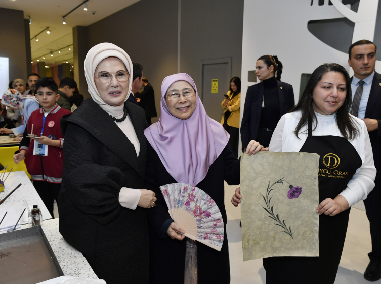 "Resmi ziyaret kapsamında ülkemizde ağırladığımız Malezya Başbakanı'nın değerli eşi Wan Azizah Wan İsmail Hanımefendi ile Cumhurbaşkanlığı Millet Kütüphanemizi ziyaret ettik. Malezya Kitaplığı'nda milletler arasında kalıcı bir düşünce dili kuran kıymetli eserleri birlikte inceledik. Ardından Yankılar: Şule Yüksel Şenler ve Malcolm X'in Mirasını Yaşatmak Sergisi'nde hakikat mücadelesinin coğrafyaları aşan güçlü izlerine tanıklık ettik. Kültür ve Turizm Bakanlığımız tarafından hayata geçirilen Yaşayan Miras Okulu'nda ise kıymetli çocuklarımızla buluştuk. Burada, ebru sanatından çiniye, hat sanatından geleneksel Türk okçuluğuna, Karagöz ile Hacivat'tan Dede Korkut anlatılarına uzanan asırlık mirasımızın çocuklarımızın ilgisiyle, emeğiyle ve merakıyla geleceğe taşındığını görmek mutluluk verici. Bu anlamlı ziyaretin, ortak değerler etrafında güçlenen kalıcı bağlara ilham olmasını temenni ediyorum."