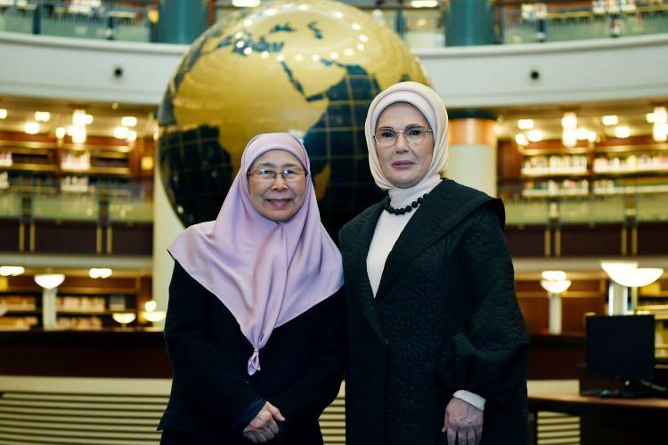 Cumhurbaşkanı Recep Tayyip Erdoğan'ın eşi Emine Erdoğan, Malezya Başbakanı Enver İbrahim'in eşi Dr. Wan Azizah İsmail ile Cumhurbaşkanlığı Millet Kütüphanesini ve Yaşayan Miras Okulunu ziyaret etti.