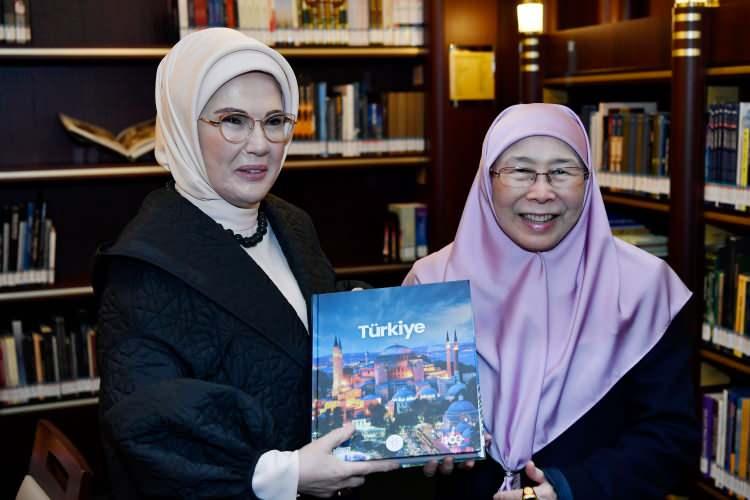 Emine Erdoğan, Malezya Başbakanı'nın eşi Wan Azizah İsmail ile Millet Kütüphanesi ve Yaşayan Miras Okulu'nu ziyaret etti. İkili, geleneksel sanatlardan sıfır atık atölyelerine kadar birçok etkinliği inceledi.