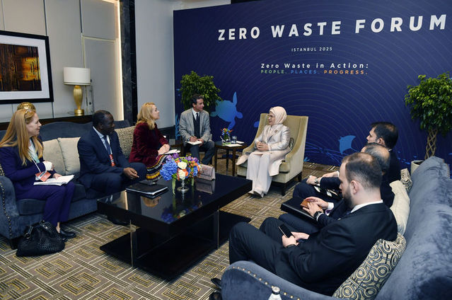 Cumhurbaşkanı Recep Tayyip Erdoğan'ın eşi ve Sıfır Atık Vakfı Onursal Başkanı Emine Erdoğan, Uluslararası Sıfır Atık Forumu kapsamında, Birleşmiş Milletler Avrupa Ekonomik Komisyonu'nun (UNECE) İcra Sekreteri Tatiana Molcean ile bir araya geldi.