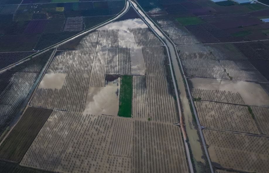 Ağaçların meyve veren dallarına kadar suların yükseldiği bölge, dronla görüntülendi.