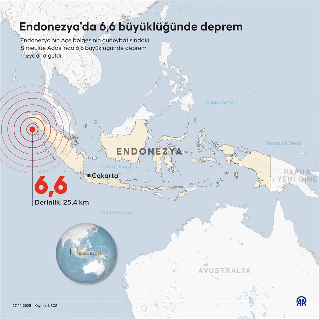 Endonezya’nın Açe eyaletinin güneybatısında yer alan Simeulue Adası, sabah saatlerinde bir depremle sarsıldı. ABD Jeolojik Araştırmalar Merkezi (USGS), yerel saatle kaydedilen depremin büyüklüğünü 6,6 olarak açıkladı.