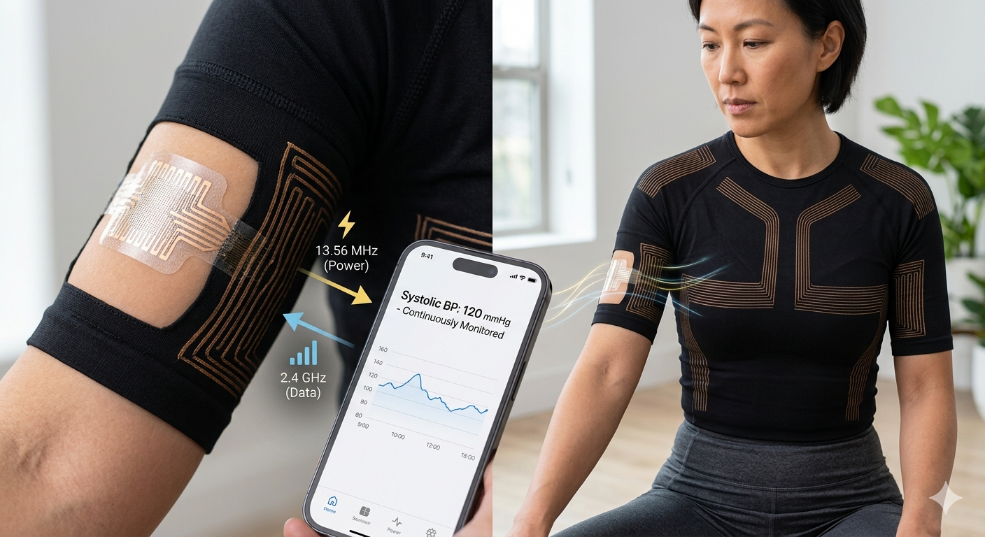 Güç ve veri kanallarını farklı frekanslarda ayırmak, aralarında parazit oluşmasını önler. Akıllı telefon, sensörlere güç sağlayan ve onlardan fizyolojik veriler toplayan merkezi bir merkez görevi görür.