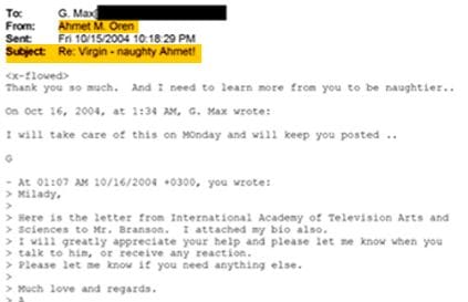 "YARAMAZ AHMET"Maxwell'in yazışmaların konu başlığını, "Virgin Naughty Ahmet/Yaramaz Ahmet" olarak belirlediği görüldü.