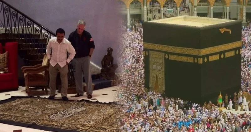Epstein'in kutsal Kısve-i Şerif parçalarını halı olarak kullandığı ortaya çıktı. Epstein ve kimliği bilinmeyen bir kişinin yere serilen Kabe örtüsüne bakarken görüntüleri ortaya çıktı.