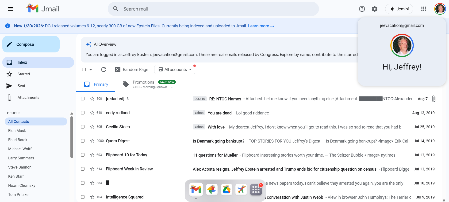 Platformun 2'nci dalga dosyaları kamuoyuna açılan Epstein’ın e-posta trafiğini, uçuş kayıtlarını ve kişisel belgelerini, "GMail" benzeri bir arayüz üzerinden sunduğu görüldü.