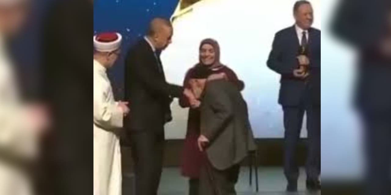 ÖDÜL VERDİĞİ DOKTORUN 92 YAŞINDAKİ BABASINA EL ÖPTÜRMÜŞTÜ13 Mart 2025'te Beştepe Kongre ve Kültür Merkezi'nde düzenlenen Türkiye Diyanet Vakfı Uluslararası İyilik Ödülleri programında ödül alan Dr. Gülahnım Bayrak'ın, 92 yaşındaki babası, Erdoğan'ın elini öpmüştü.