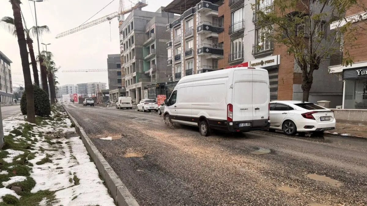 Hatay’da 75. Yıl Bulvarı’ndaki çukurlar o kadar derin ki, otomobiller güç ilerliyor.