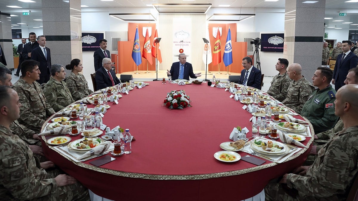Cumhurbaşkanı Recep Tayyip Erdoğan dün Özel Kuvvetler Komutanlığı’nda Bordo Bereliler ile iftar yaptı. Erdoğan’ı karargâha gelişinde Milli Savunma Bakanı Yaşar Güler, Genelkurmay Başkanı Selçuk Bayraktaroğlu, Deniz Kuvvetleri Komutanı Ercüment Tatlıoğlu, Hava Kuvvetleri Komutanı Cemal Kadıoğlu, Kara Kuvvetleri Komutanı Orgeneral Metin Tokel ile Genelkurmay 2. Başkanı Orgeneral Levent Ergün karşıladı.