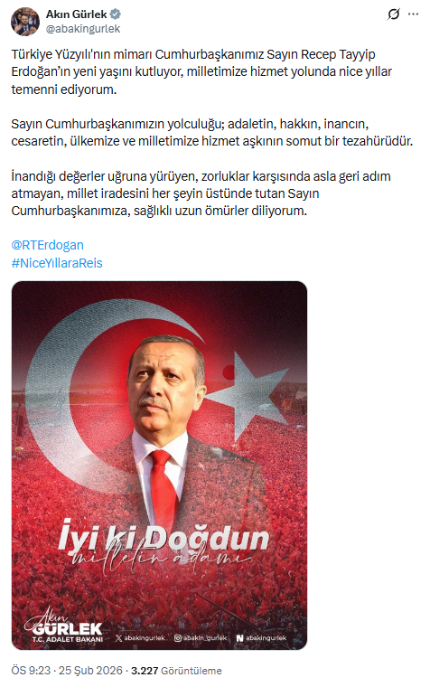 — Akın Gürlek (@abakingurlek) February 25, 2026