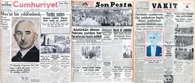 Bir yıl sonra 11 Kasım 1940'ta ise gazeteler Atatürk'ün anılmasıyla ilgili haberlerin yanı sıra İsmet İnönü'nün cumhurbaşkanı seçilmesinin yıldönümünü öne çıkaran "Mesut Bir Yıldönümü" manşetleriyle de çıkmaya başladı.