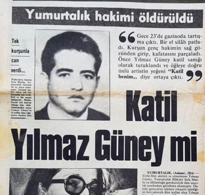 Yılmaz Güney, gazinoda tartışma yaşadığı Yumurtalık hâkimi Sefa Mutlu'yu silahla vurarak öldürdü. Yılmaz Güney, Yumurtalık hâkimi Sefa Mutlu'yu öldürdüğü için 1976 - 1981 arasında hapis yattığı Isparta Yarı Açık Cezaevi'nden firar ederek Yunanistan'ın Meis Adası'na kaçtı. Güney oradan da Paris'e geçti. Güney, 1984'te mide kanseri nedeniyle hayatını kaybetti.