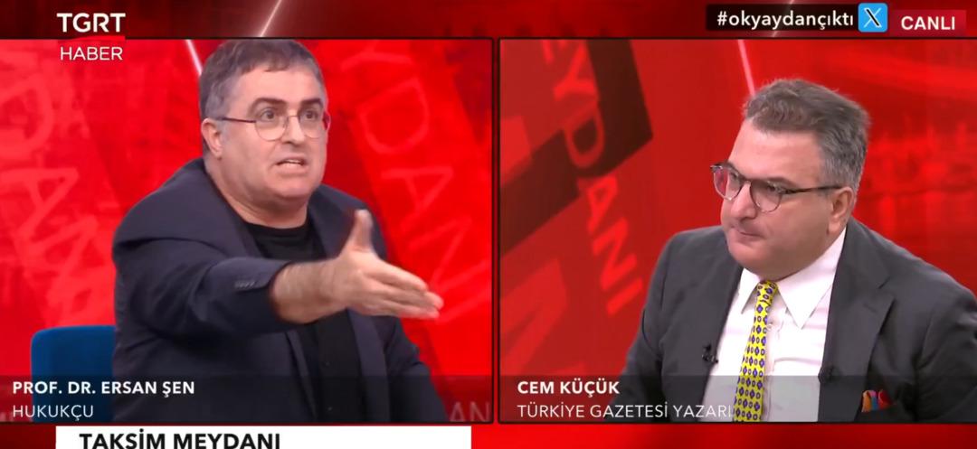 Hukukçu Prof. Dr. Ersan Şen ile gazeteci Cem Küçük arasında 'İmralı' gerilimi yaşandı. TGRT Haber'deki Taksim Meydanı programında tansiyon yükseldi.
