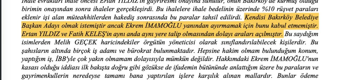 "AYNI ANDA AYNI YERE TALİP OLMASINDAN DOLAYI ARALARI AÇILMIŞTIR"Aynı dosyada etkin pişmanlıktan yararlanan bir diğer isim Adem Soytekin’in ifadesinde ise bu kez Ertan Yıldız ile Fatih Keleş arasındaki kişisel ilişkiye dair bir not yer aldı. Soytekin, savcılık beyanında Ertan Yıldız’ın siyasi hedeflerinden ve iki isim arasındaki mesafeden söz ederek şunları dile getirdi: