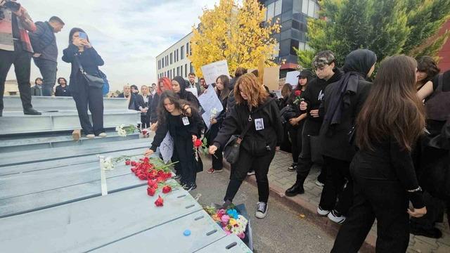 Erciyes Üniversitesi’nde (ERÜ) bir araya gelen öğrenciler dün boşandığı eşi tarafından öldürülen Meliha Keskin’in öldürüldüğü yere karanfil bıraktı.