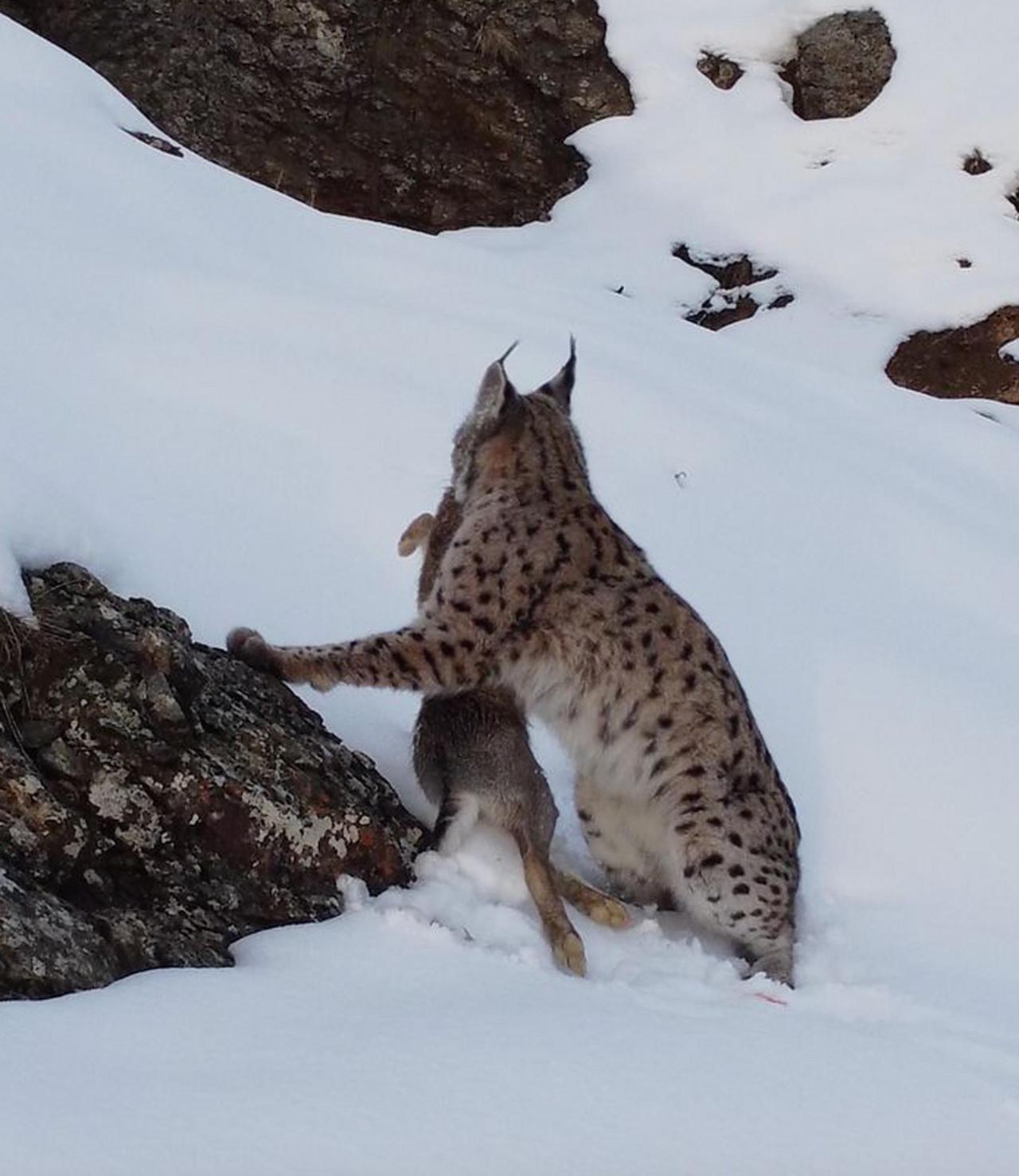 Erzincan'da nesli tükenme tehlikesi altında bulunan vaşak avlanırken görüntülendi.