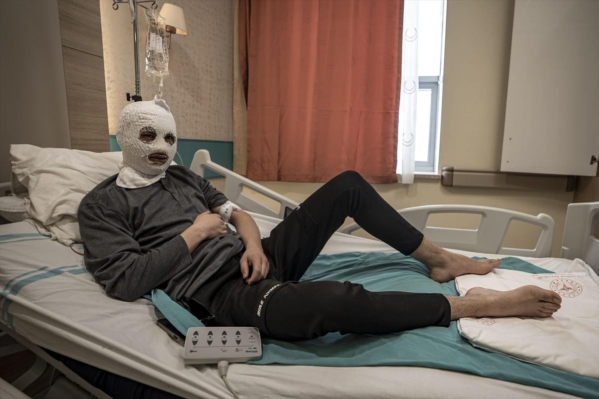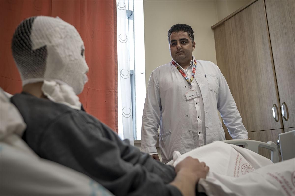 Yanık Tedavi Merkezi doktorlarından Emre Nohutçu, yüz ve göğüs bölgesinde alev yanıkları bulunan hastayı yakından takip ettiklerini anlattı.
