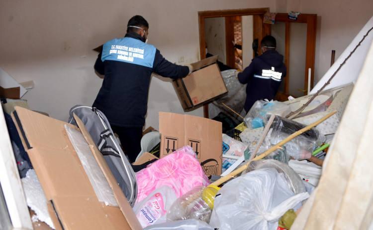 Kokudan rahatsız olan komşuların şikayeti üzerine eve giden ekipler, arkası çöp yığınlarıyla dolu olan kapıyı açamayınca M.A.yı pencereden dışarıya çıkardı.