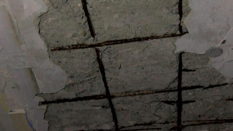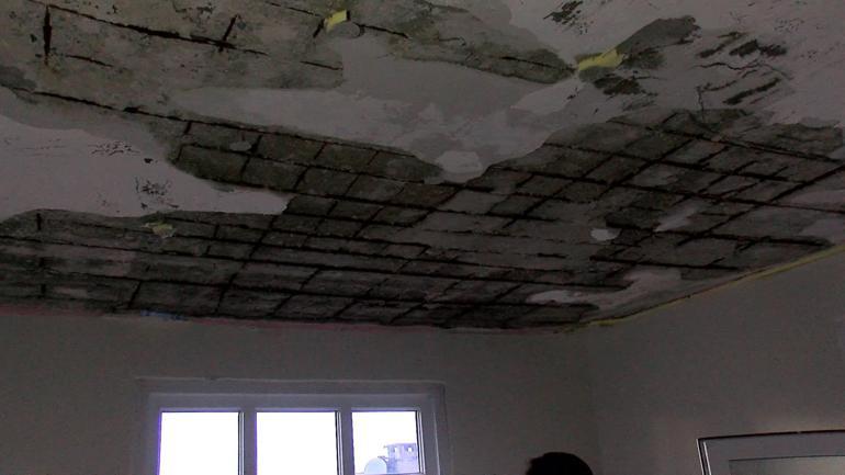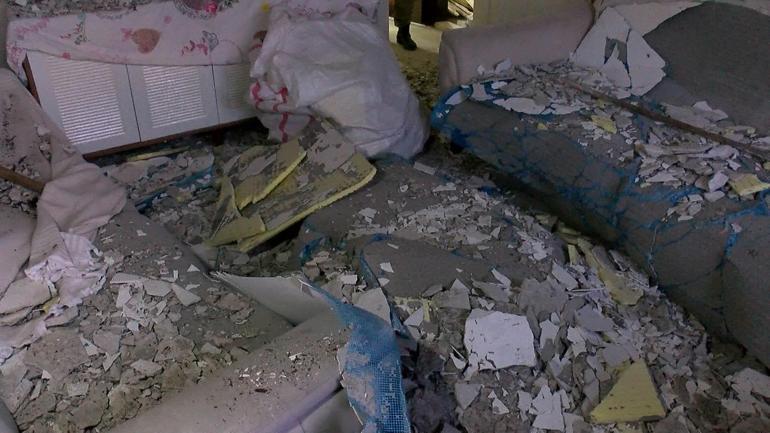 Olayın ardından çöken tavandan sarkan çürük demirler ortaya çıktı. Ekiplerin çalışmalarının ardından dairede yaşayan Alev ailesi çöken parçaları temizlemeye başladı.