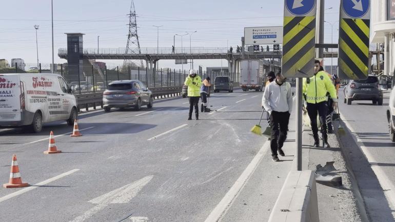 Esenyurt D-100 Karayolu Saadetdere mevkiinde saat 12.20 sıralarında 35 MCA 798 plakalı hafif ticari aracın sürücüsü henüz bilinmeyen bir nedenle direksiyon hakimiyetini kaybetti. Hafif ticari araç, beton bariyere çarptı. Çarpmanın etkisiyle yan yatan araçta bulunan sürücü kazayı yara almadan atlattı. Devrilen beton bariyer ise yan yolda ilerleyen başka bir araca çarparaktı. Kazayı görenlerin ihbarı üzerine olay yerine polis ve sağlık ekipleri sevk edildi. Kaza nedeniyle D-100 Karayolu Beylikdüzü istikametinde yoğun trafik oluştu. Araçların çekici yardımıyla kaldırılmasının ardından trafik akışı normale döndü. Kaza anı çevredeki bir iş yerinin güvenlik kamerasına yansıdı. Görüntülerde, seyir halindeki aracın beton bariyere çarparak yan yattığı anlar yer aldı.